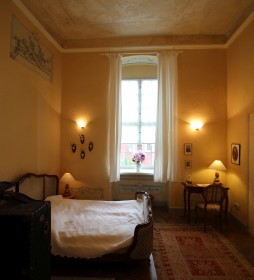 Euphrosina-SuiteDiese himmelblaue Suite erinnert an die gleichnamige gebürtigen Italienerin, die Ende des 19 Jh. das Schloss bewohnte und viele der Räume in ihrer Lieblingsfarbe himmelblau streichen lies. Ausstattung: Bad mit begehbarer Dusche, WC |